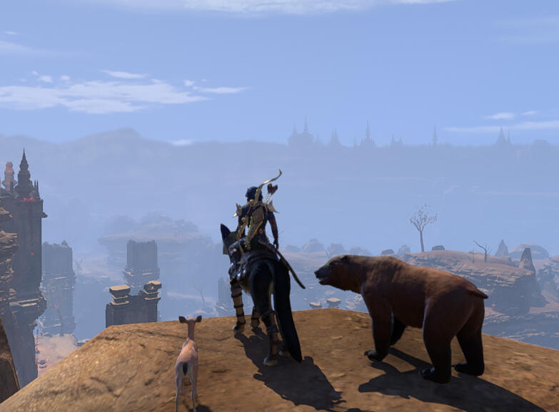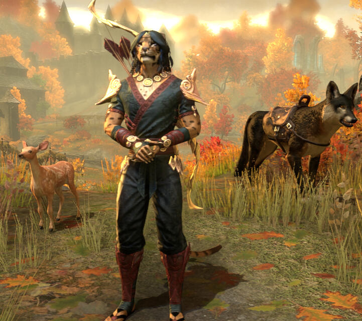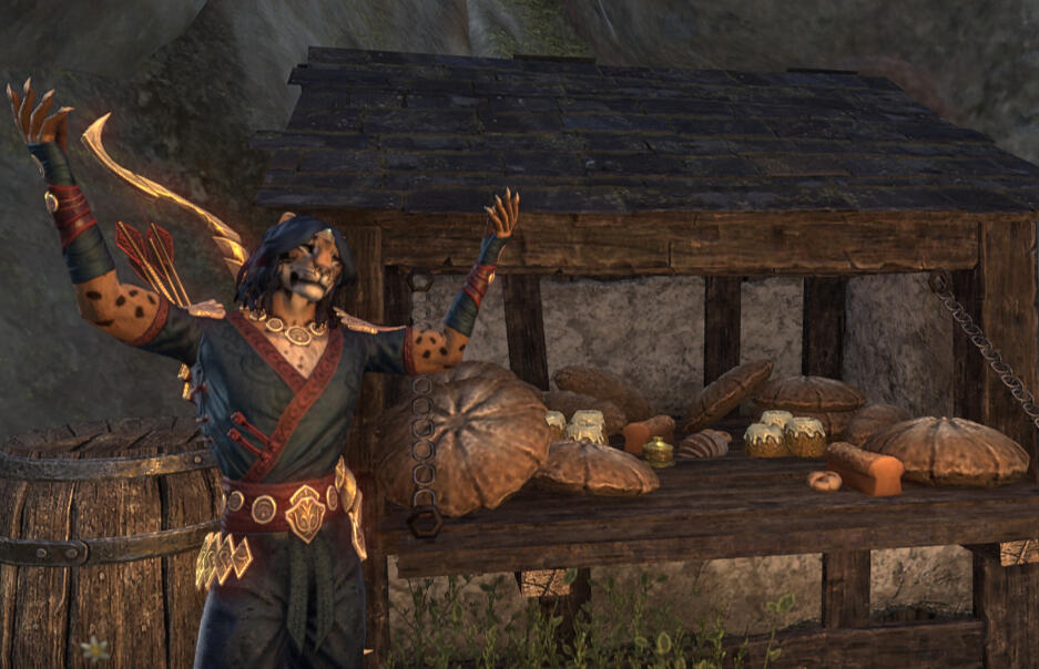 PRESENT DAY: The ever-friendly wandering pedlar, Amur'chant, takes his services all across Tamriel. His days are spent traveling, trading, and advocating for animals. But he always spares time for social fun, aiming to make new connections wherever he goes.While he makes his living as a merchant, Amur also offers his veterinarian skills to those in need. He loses money on the practice, but it is worth it to him to be of help to others.In his journeys, he occasionally adopts disabled or elderly creatures, and relocates them to his sanctuary in Northern Elsweyr. The picture of peace, his sanctuary is spacious enough that many different animals can exist together in harmony. Although that is his base, it is manned by hired caretakers in his absence, as he spends much of his time on the road.